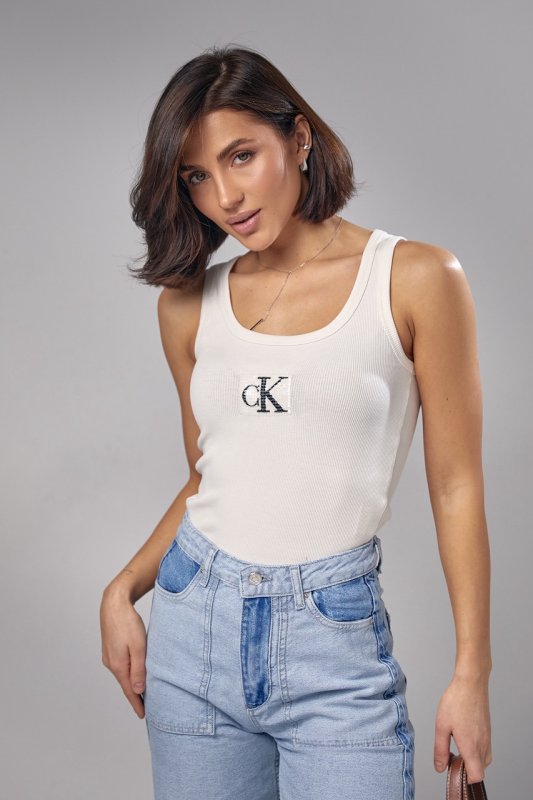 Майка жіноча в рубчик з паєтками і вишивкою CK - 241004 бежева