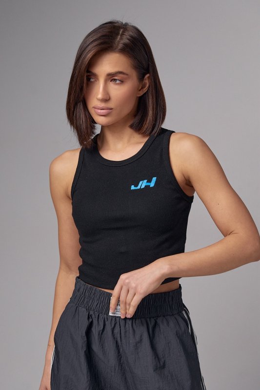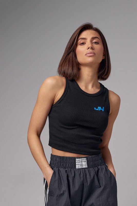 Майка жіноча в рубчик з вишивкою JH - 2961 чорна