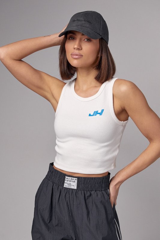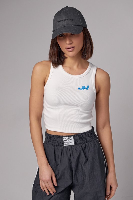 Майка жіноча в рубчик з вишивкою JH - 2961 молочна