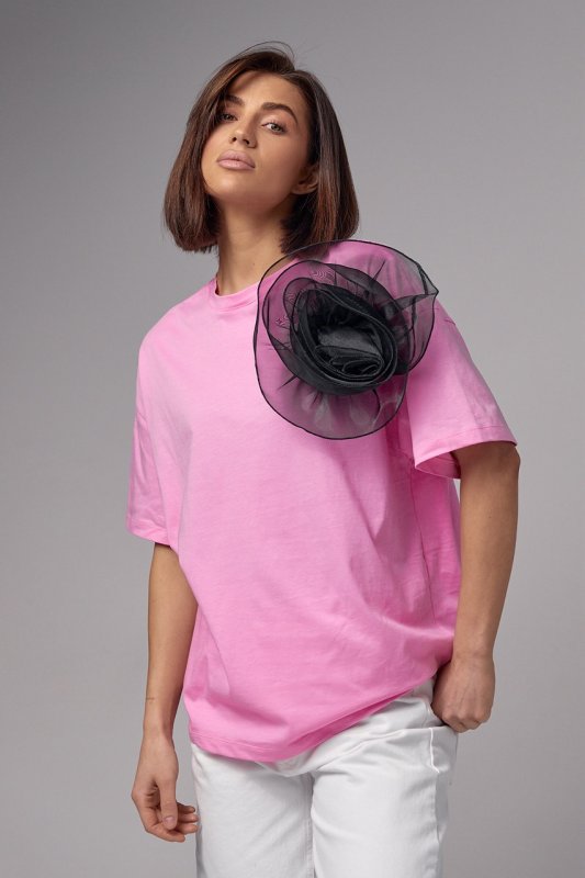 Базова жіноча футболка та оригінальний акцент у вигляді об'ємної квітки - ідеальний тандем для стильного образу. Ця модель легко перетворить ваш образ і зробить його елегантним і привабливим.