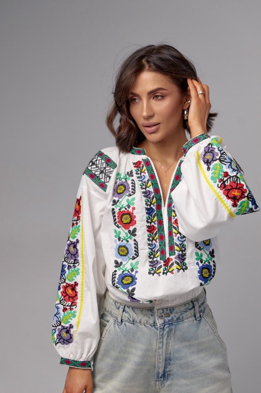 Жіноча вишиванка з квітами хрестиком - 5614