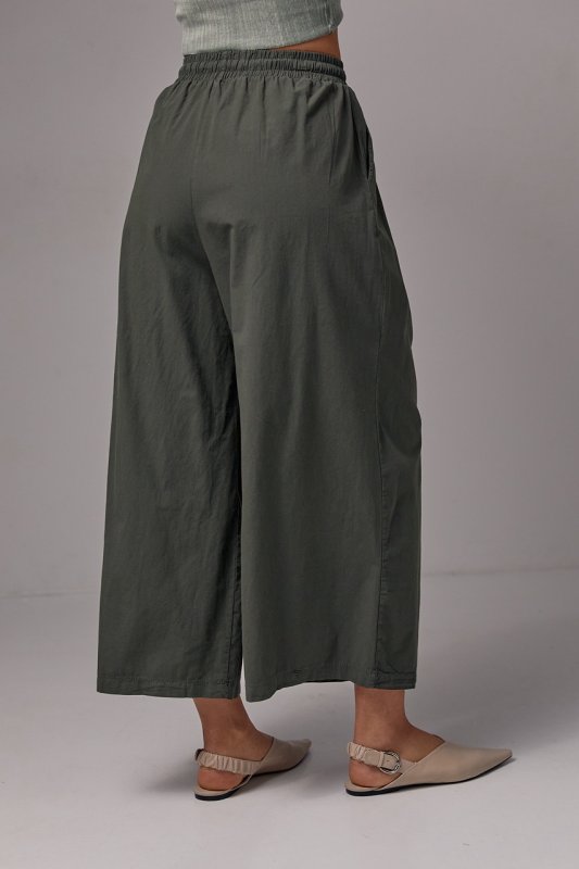 Жіночі брюки-кюлоти на гумці - 21510 хакі