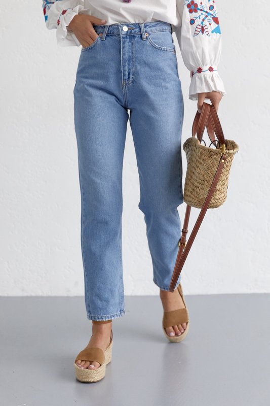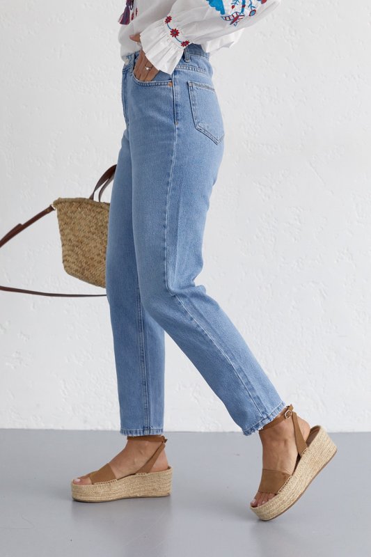 Жіночі джинси МОМ із завищеною талією - 0715 блакитний