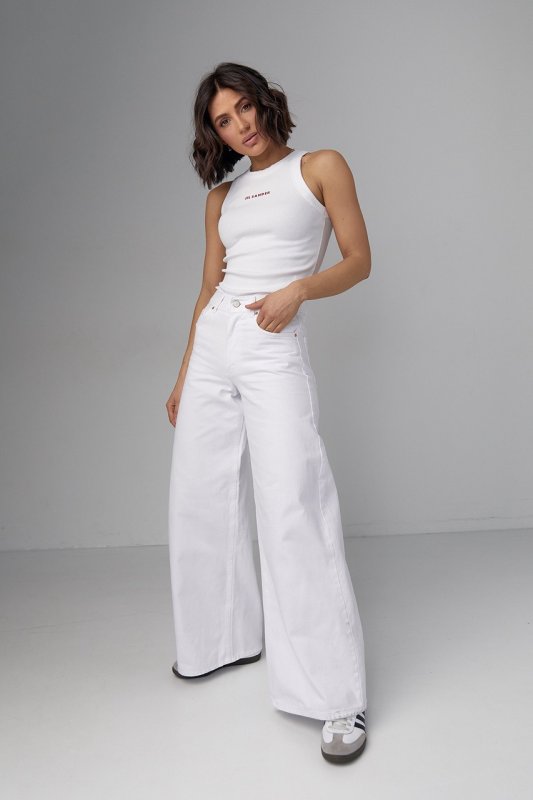 Жіночі джинси Palazzo – це модний та комфортний варіант одягу, який поєднує в собі практичність та зручність. Вони мають широкі, розкішно падаючі штанини, які створюють ефект легкої свободи і грайливості при русі.
