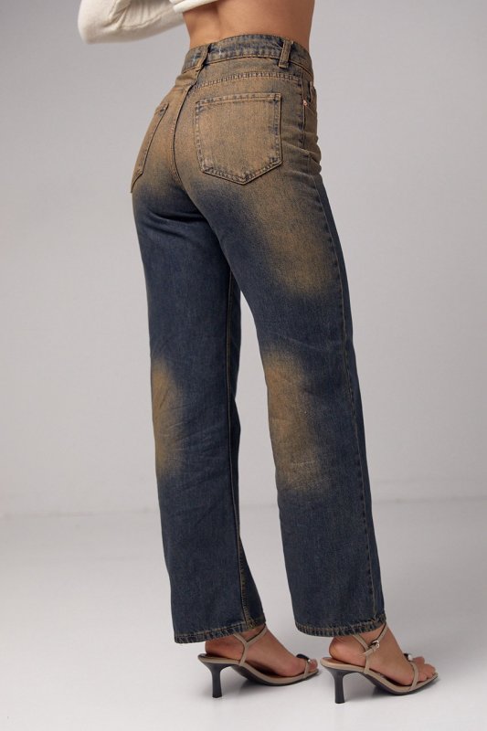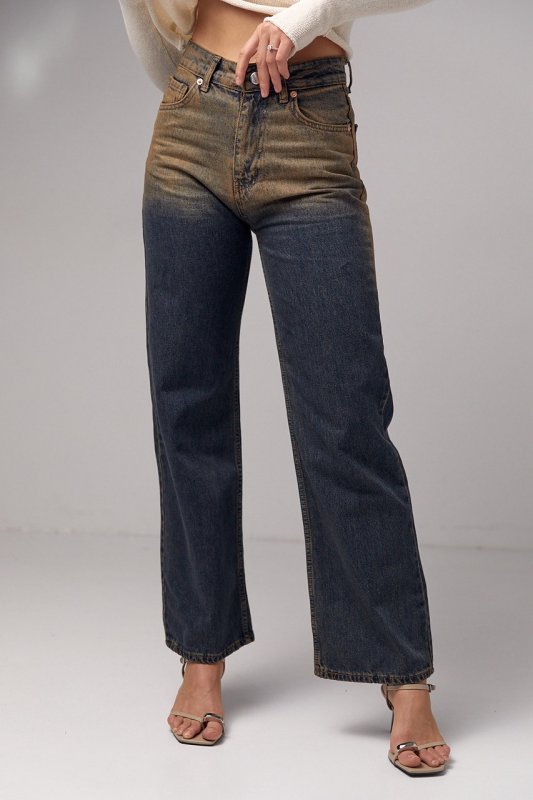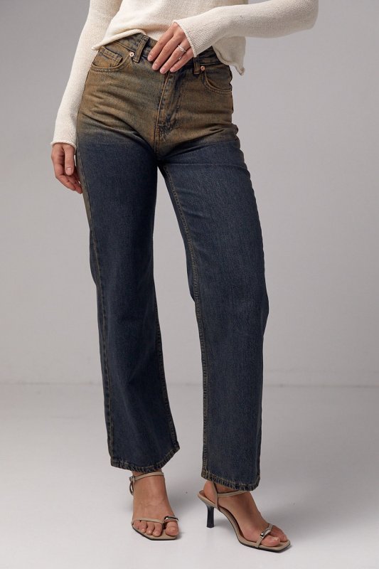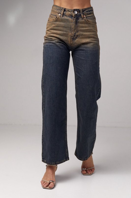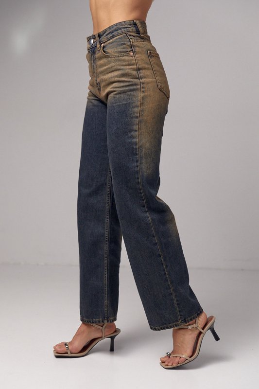 Жіночі джинси прямого крою з ефектом two-tone coloring - це стильний варіант одягу, який відрізняється особливою двоколірною тканиною. Цей ефект надає джинсам унікального та сучасного вигляду.