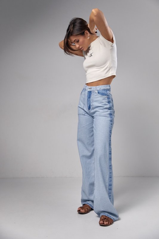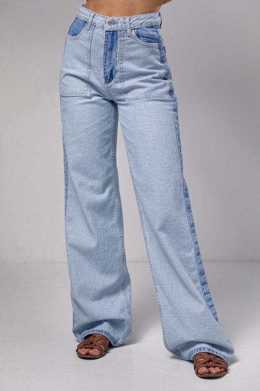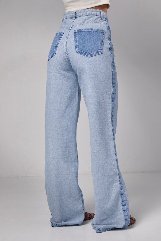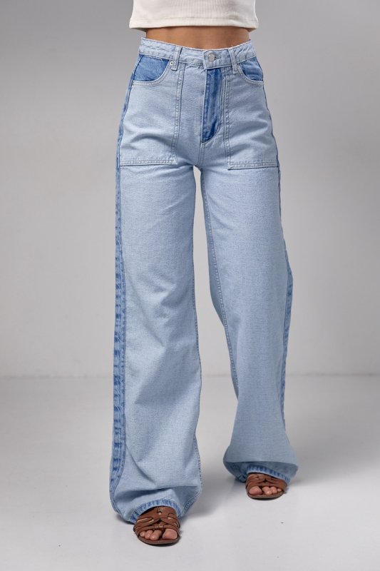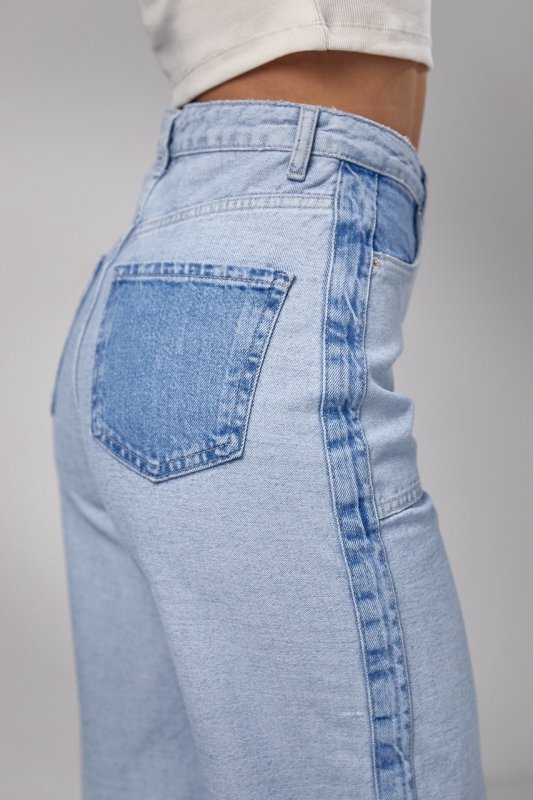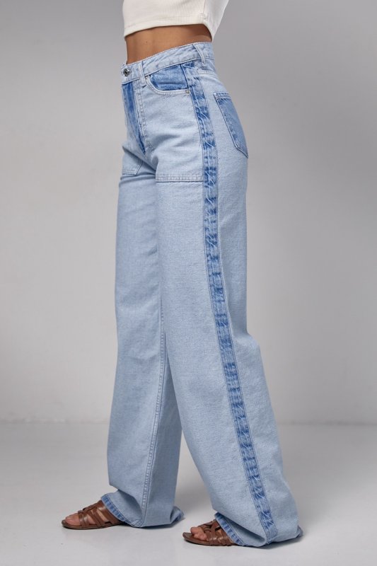 Жіночі джинси з лампасами та накладними кишенями - 3237 блакитний