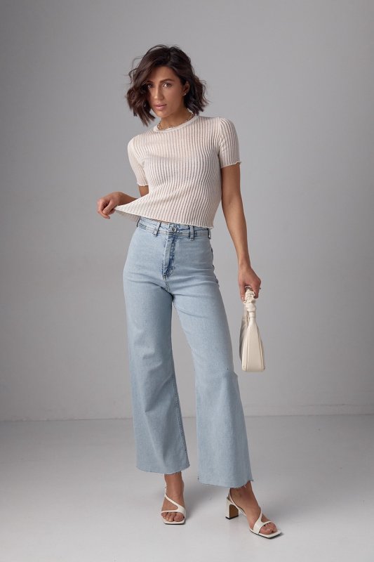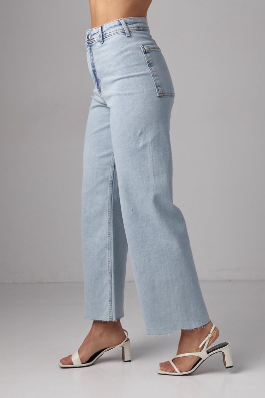 Жіночі джинси Straight з необробленим низом - 90104 блакитний