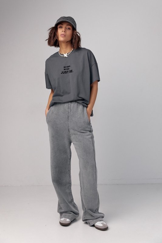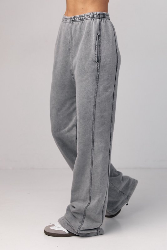 Жіночі трикотажні штани із затяжками внизу - 1136 сірі