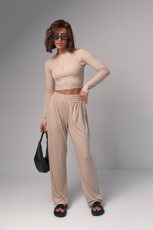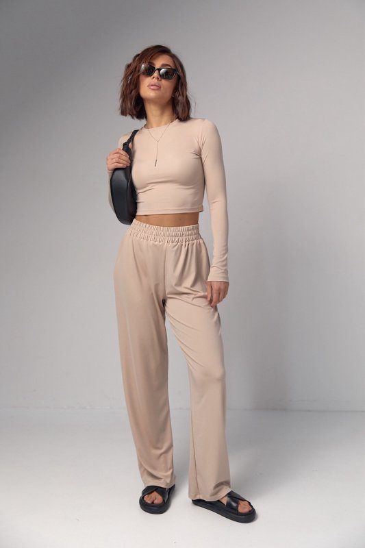 Жіночий базовий костюм з еластичної тканини - 21026 бежевий