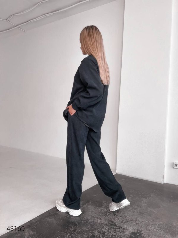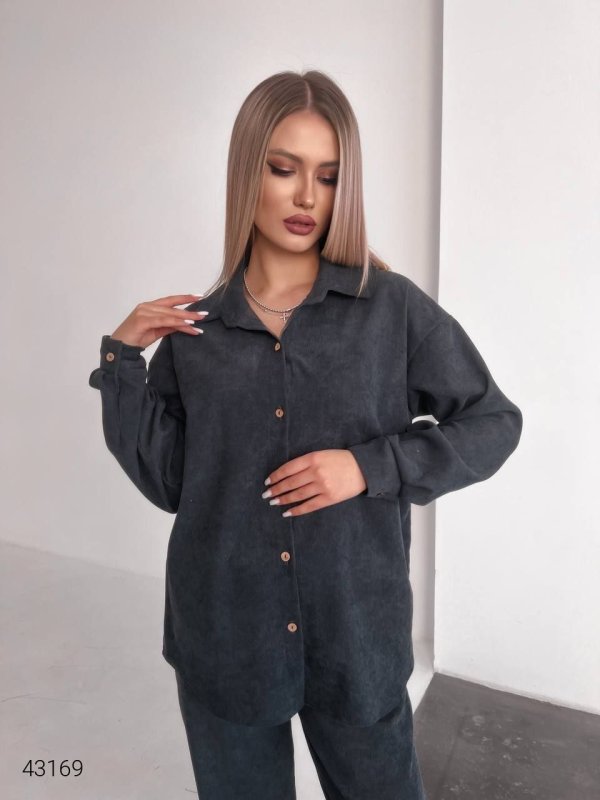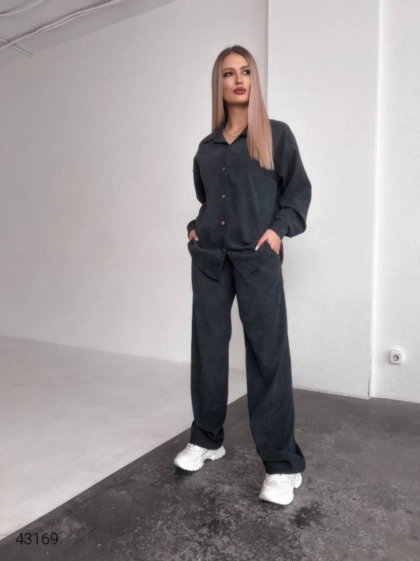Жіночий брючний костюм з сорочкою 43169 темно-сірий