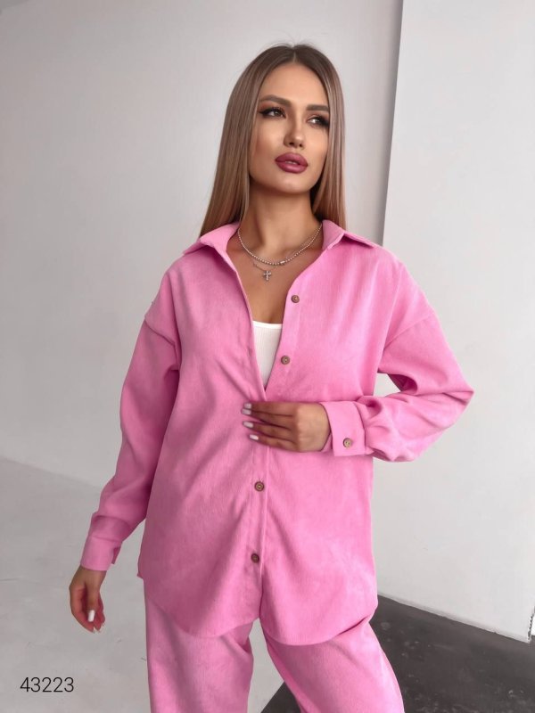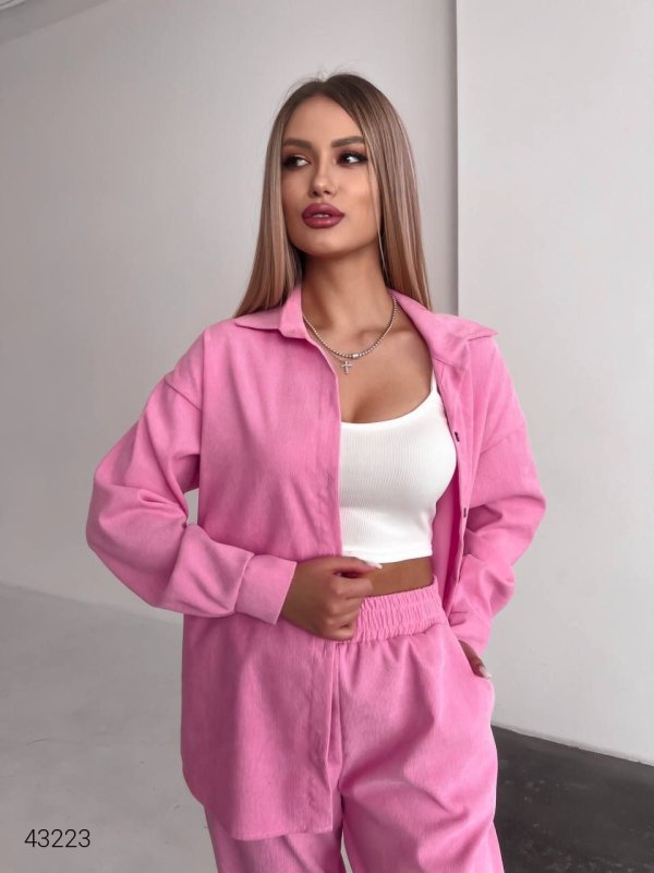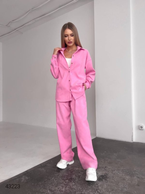 Жіночий брючний костюм з сорочкою 43223 рожевий