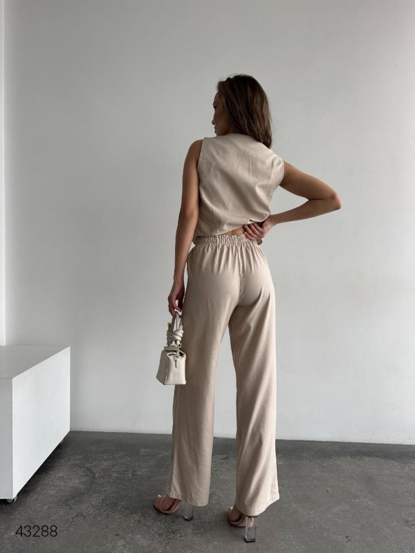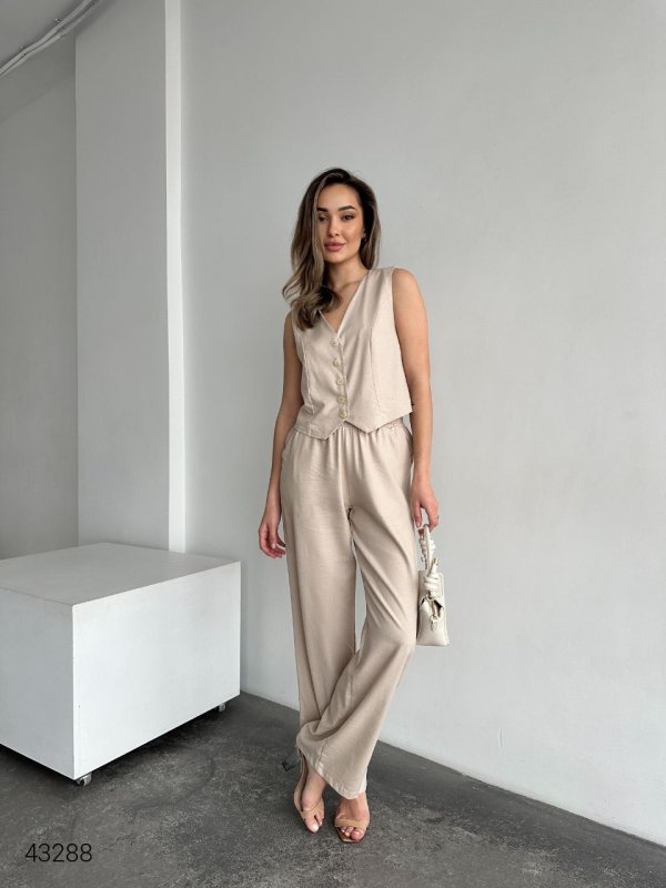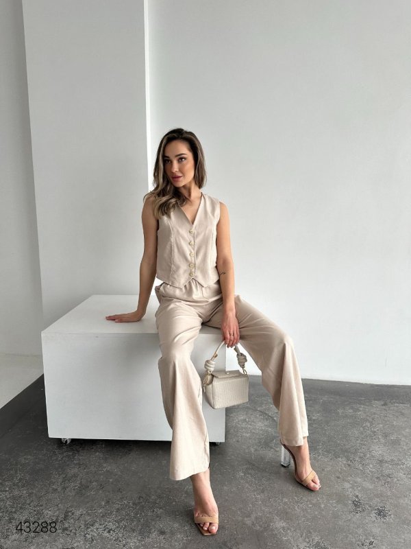 Жіночий брючний костюм із жилеткою 43288 бежевий