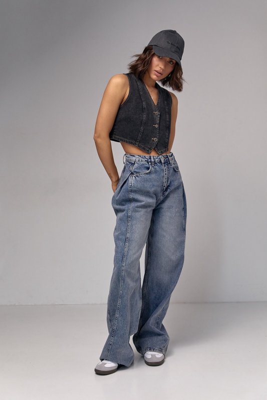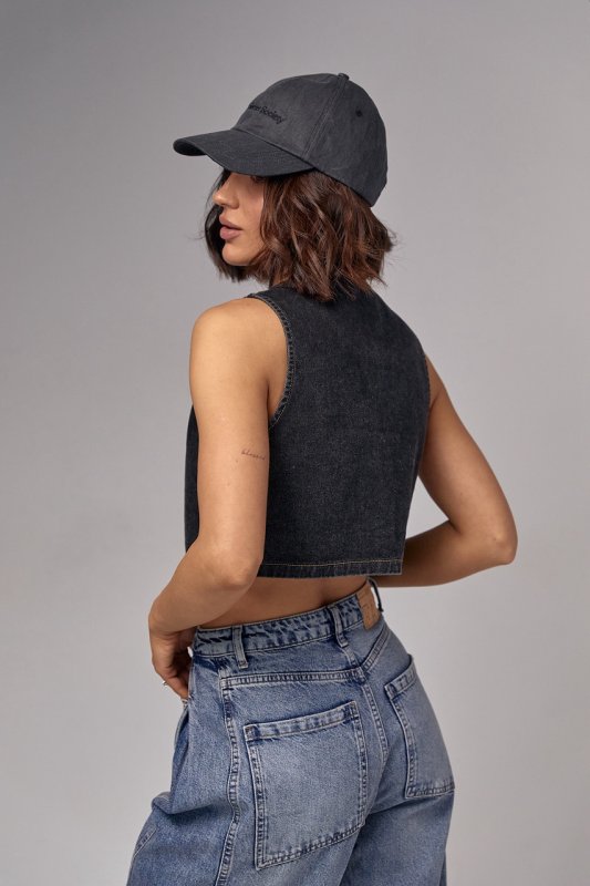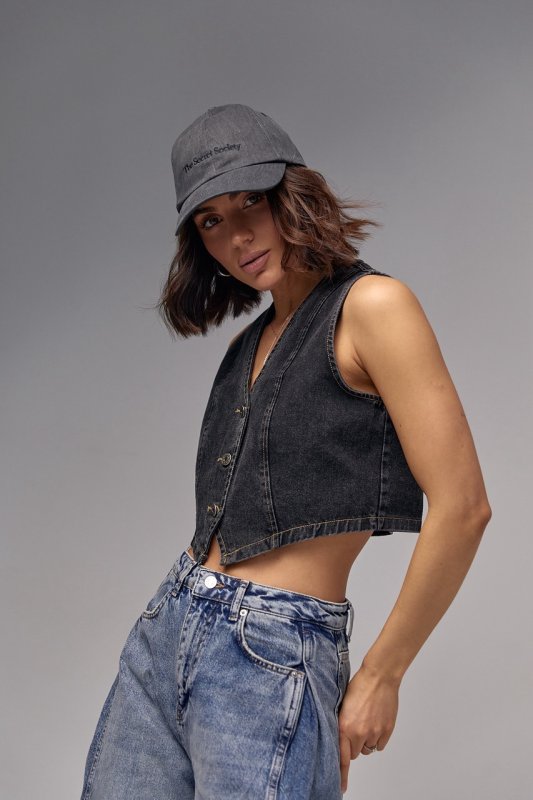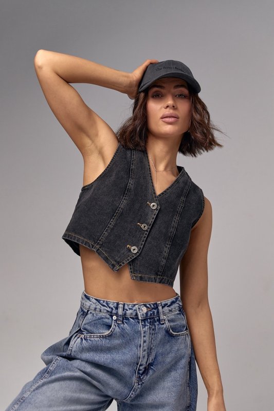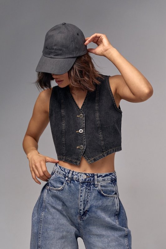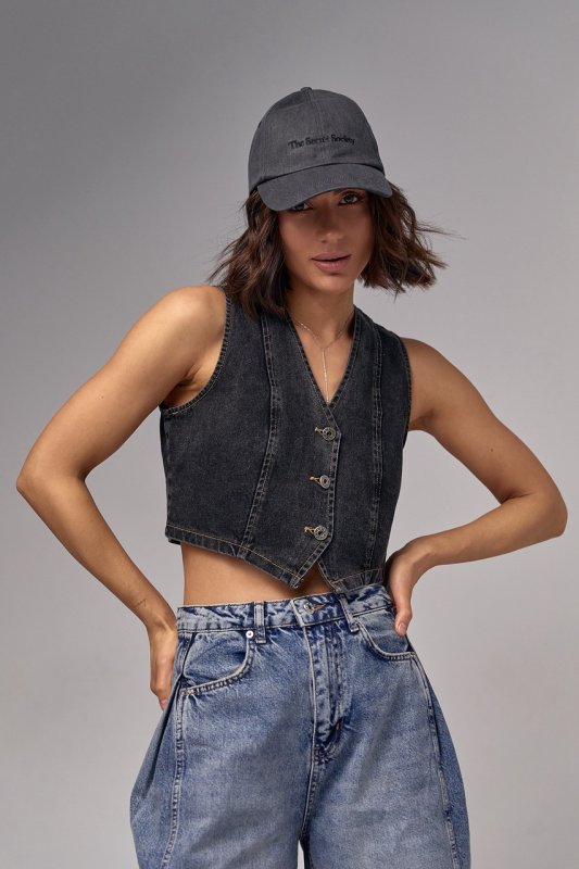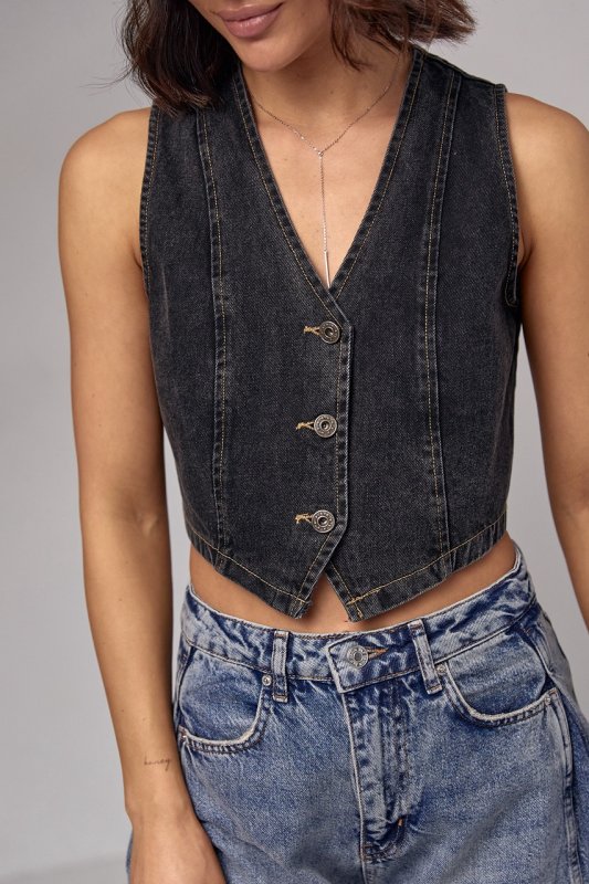 Жіночий джинсовий жилет на ґудзиках - 9053 чорний