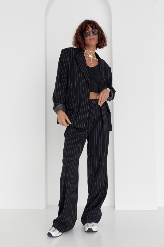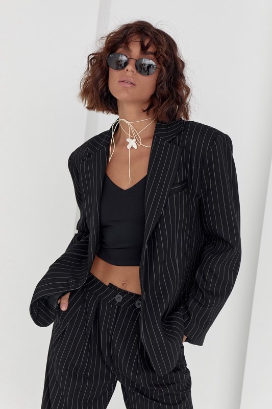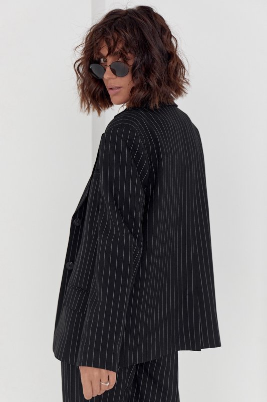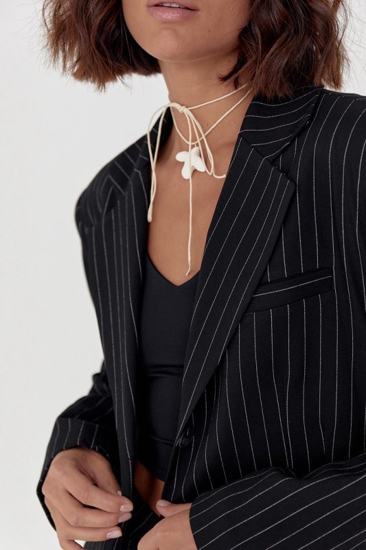 Жіночий піджак на гудзиках у смужку - 9304 чорний