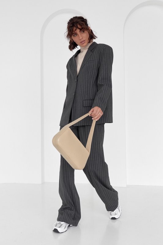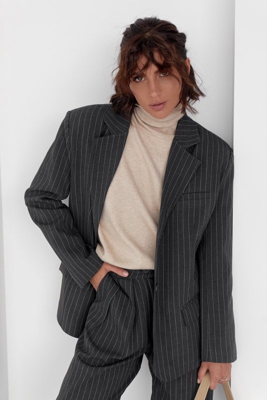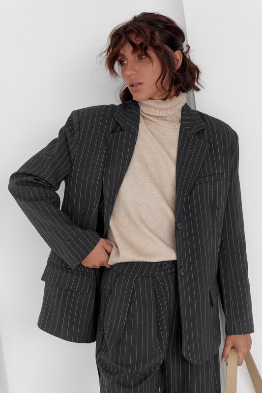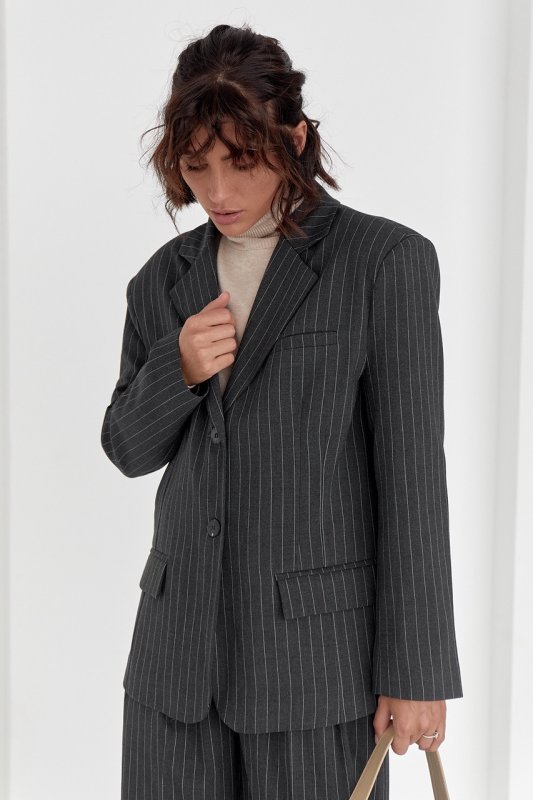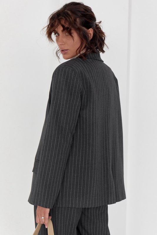 Жіночий піджак на гудзиках у смужку - 9304 темно-сірий