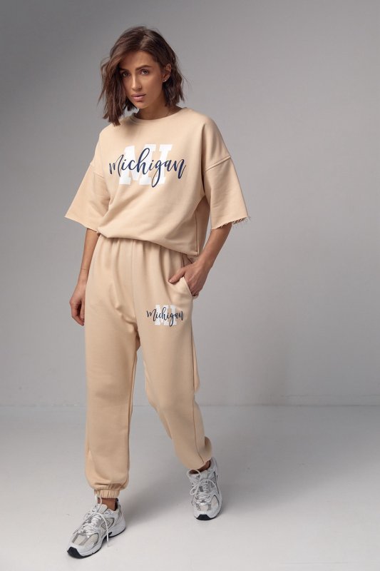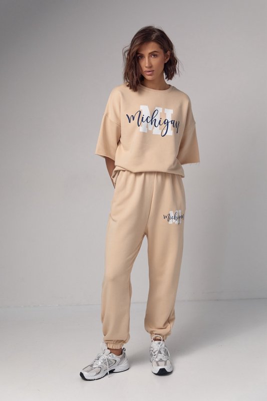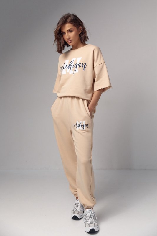 Жіночий спортивний костюм з написом Michigan - 04195 кремовий
