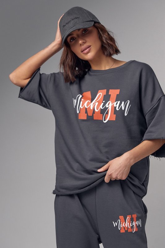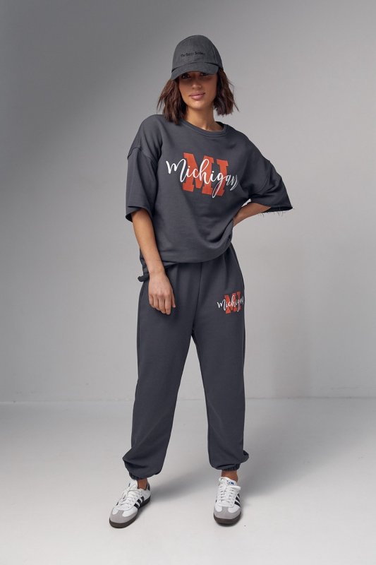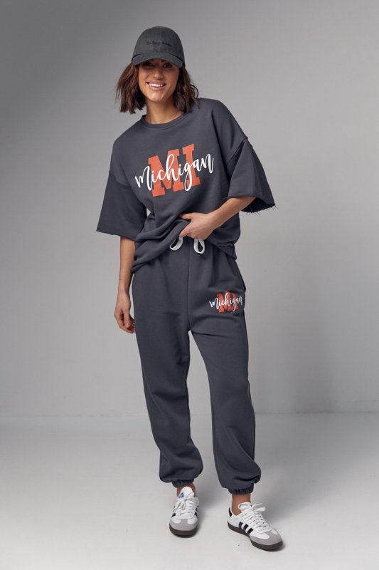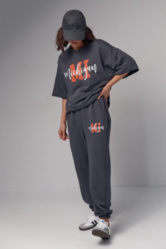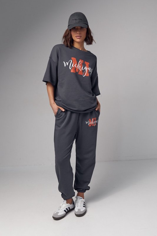 Жіночий спортивний костюм з написом Michigan - 04195 темно-сірий