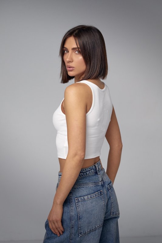 Як база під оверсайз сорочки, об'ємні жакети або як самостійний верх - ця трикотажна майка в рубчик впишеться в найрізноманітніші вбрання. І так, її можна поєднувати з одягом абсолютно будь-яких кольорів.