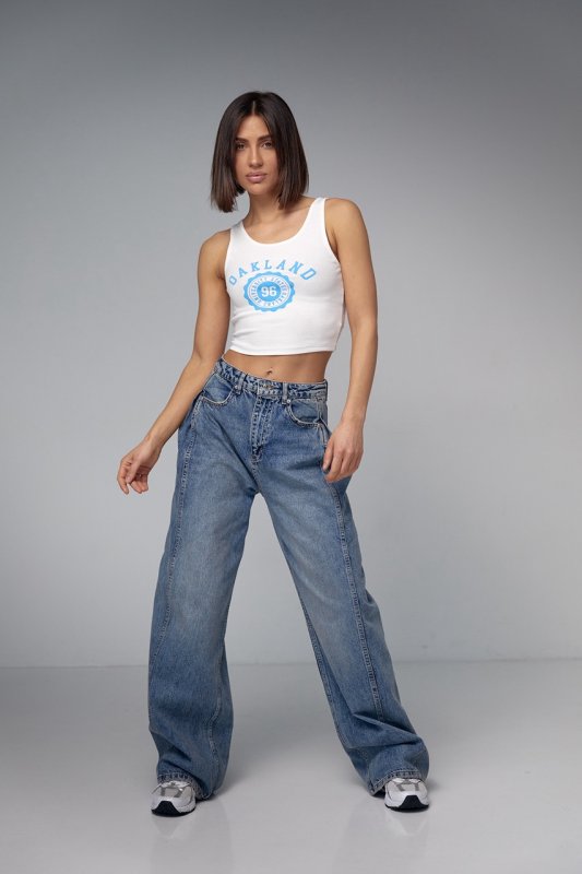 Жіночий топ у рубчик з принтом Oakland - 3589 блакитний
