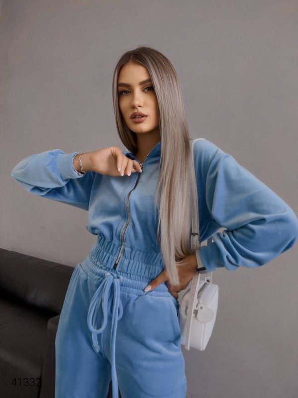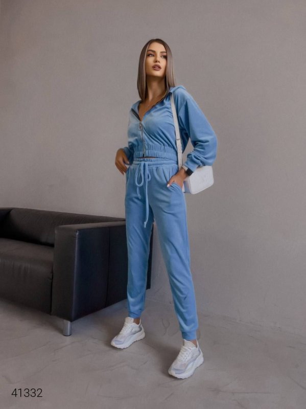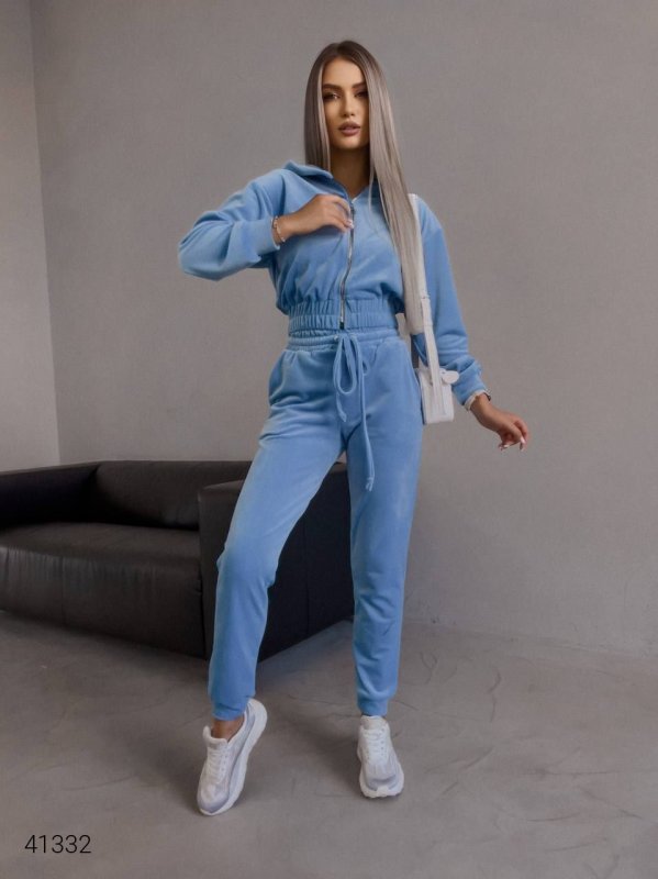 Жіночий велюровий костюм 41332 блакитний