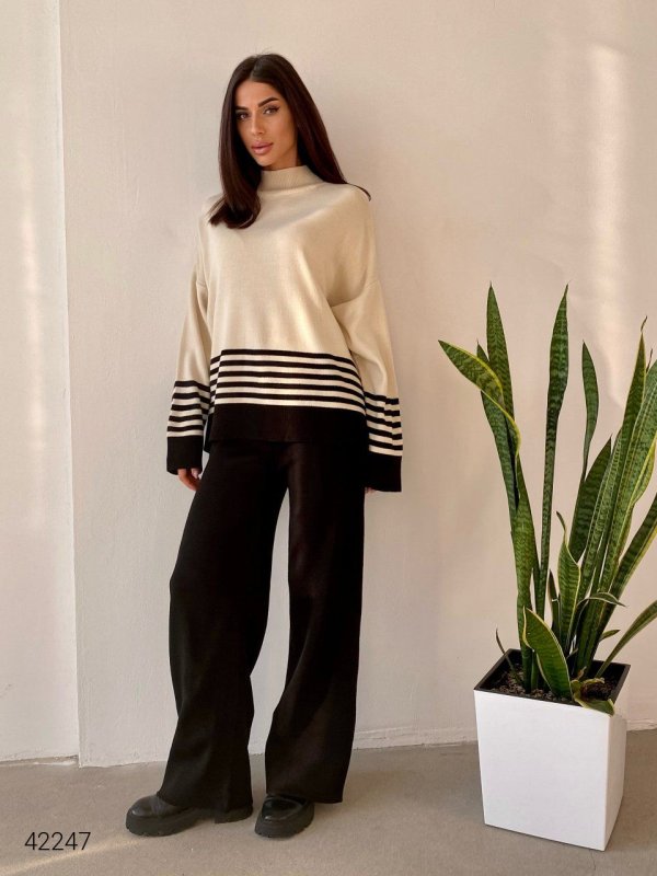 Жіночий в'язаний костюм оверсайз 42247 чорний