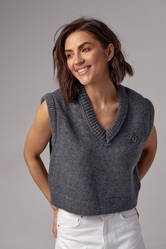 Жіночий в'язаний жилет - 241005 темно-сірий