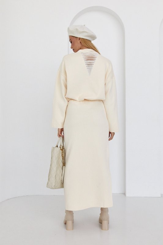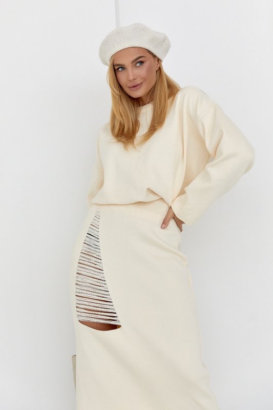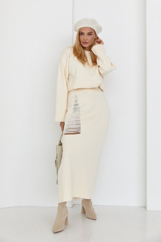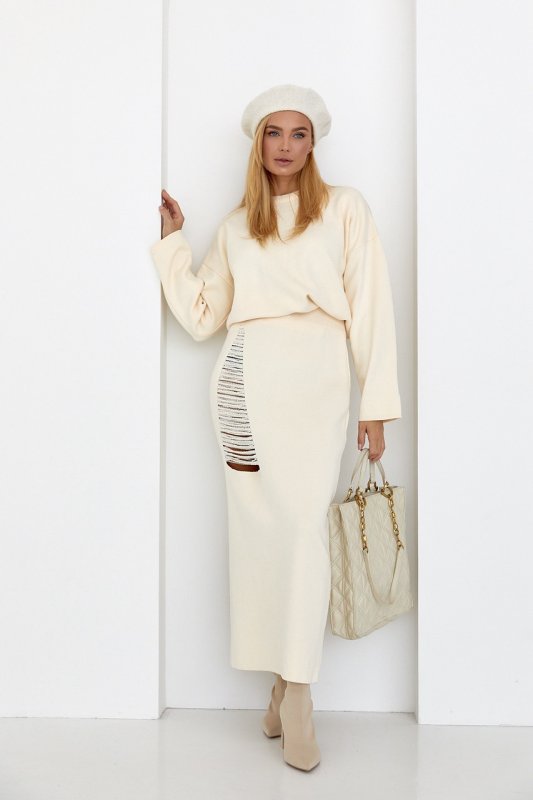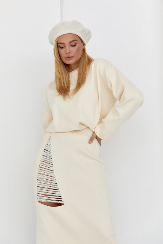 Оригінальний костюм-двійка, що складається з вільного джемпера і прямої спідниці з розпіркою - твій готовий до виходу look, який ти також можеш комбінувати з іншим модним одягом.