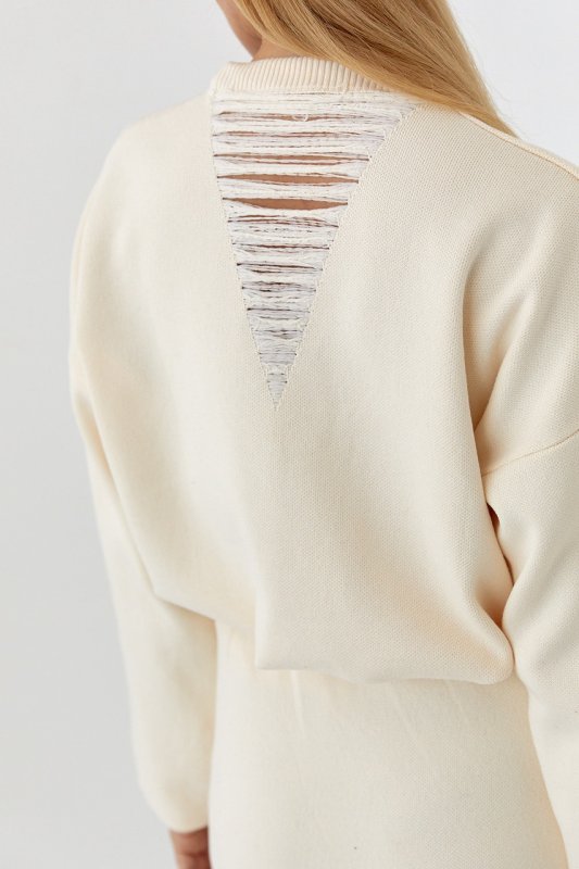 Перша причина закохатися в нашу новинку – приємна на дотик тканина. Друга – ідеальний oversize крій, який не лише на піку популярності, а й подарує максимум комфорту. Третя причина – оригінальний декор у вигляді вирізів на спідниці та спинці джемпера з нитками, які розташовані рядами. І, нарешті, четверта причина – можливість носити окремо кожну річ та отримати ще більше варіантів вражаючих образів!