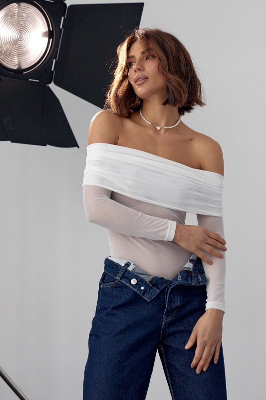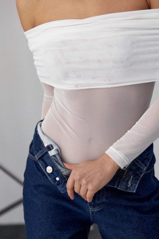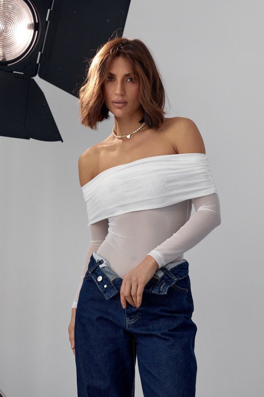 Жіноче боді із сітки з відкритими плечима 4606 молочний