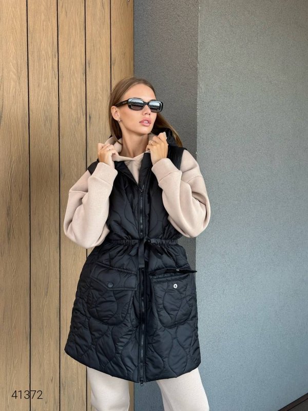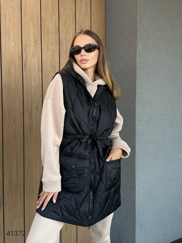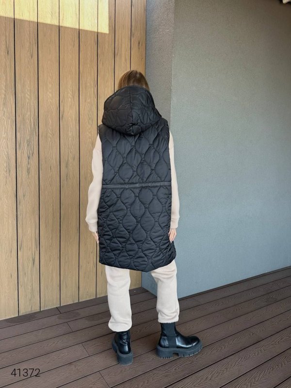 Жилет жіночий подовжений з капюшоном 41372 чорний