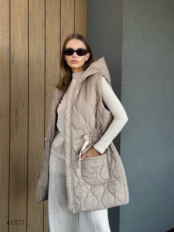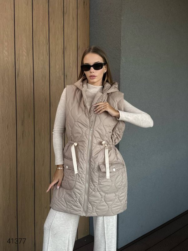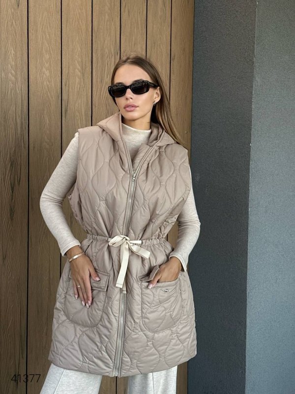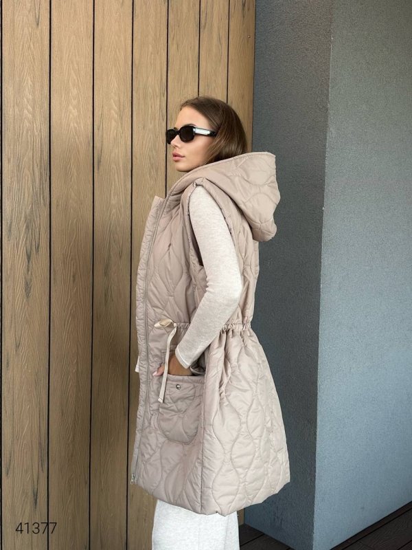 Жилет жіночий подовжений з капюшоном 41377 бежевий