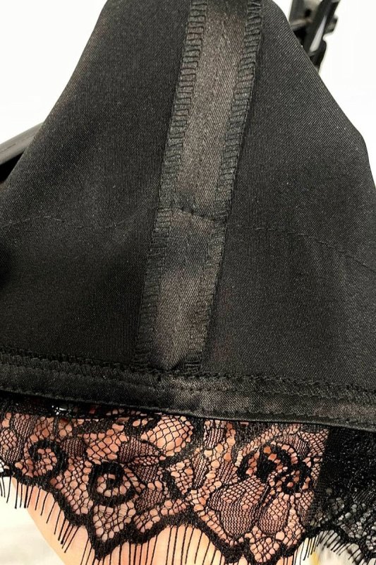 Атласная юбка с кружевом 6191 черная
