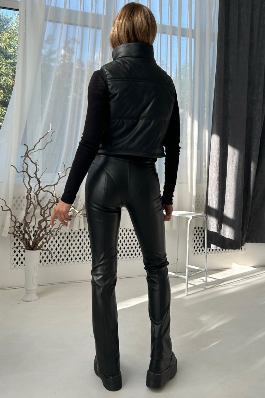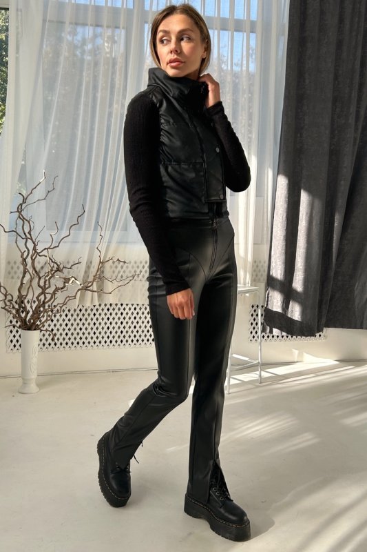 Брюки из эко кожи с темной металлической молнией 4307
