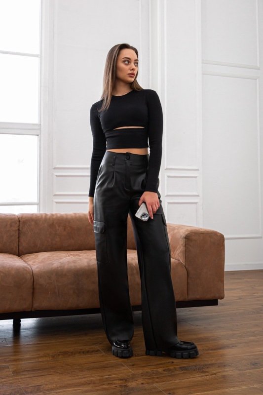 Брюки карго из эко-кожи 4286