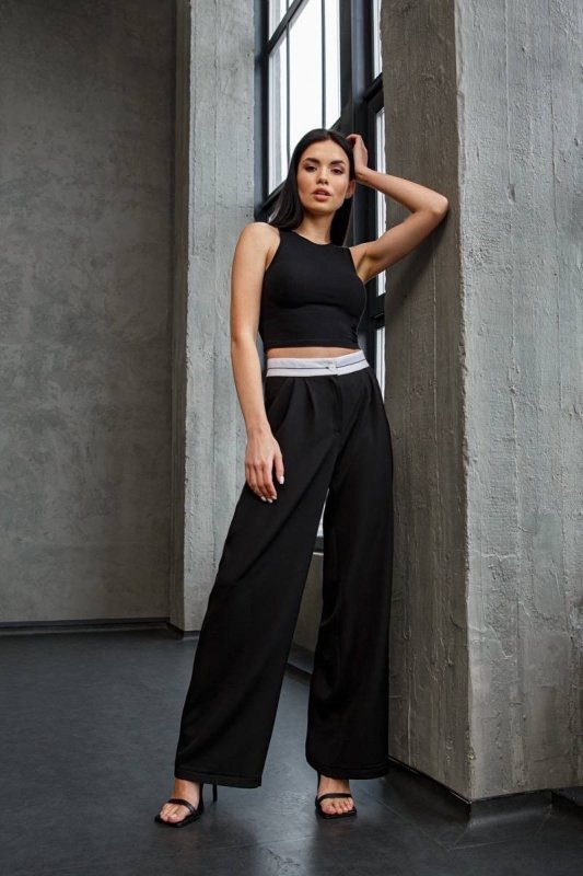 Широкие брюки с защипами в поясе и корсажной лентой – отличный выбор для женщин, которые хотят выглядеть элегантно и стильно. Брюки имеют удобный пояс на корсажной ленте, подчеркивающий талию и создающий идеальный силуэт. Защипы на поясе и широкие штанины придают нотку оригинальности и делают эту модель незаменимой в вашем гардеробе. Брюки доступны в черном и разных размерах, чтобы вы могли найти идеальный размер для себя.