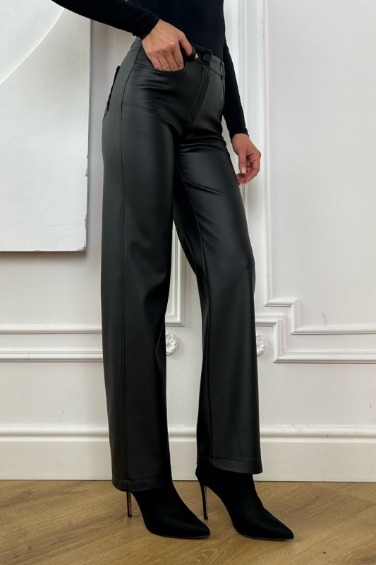 Брюки трубы из эко кожи 4312 черные
