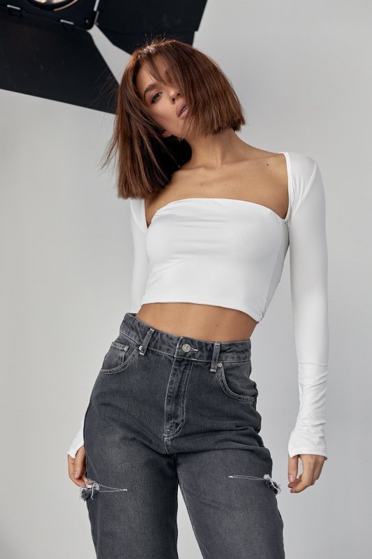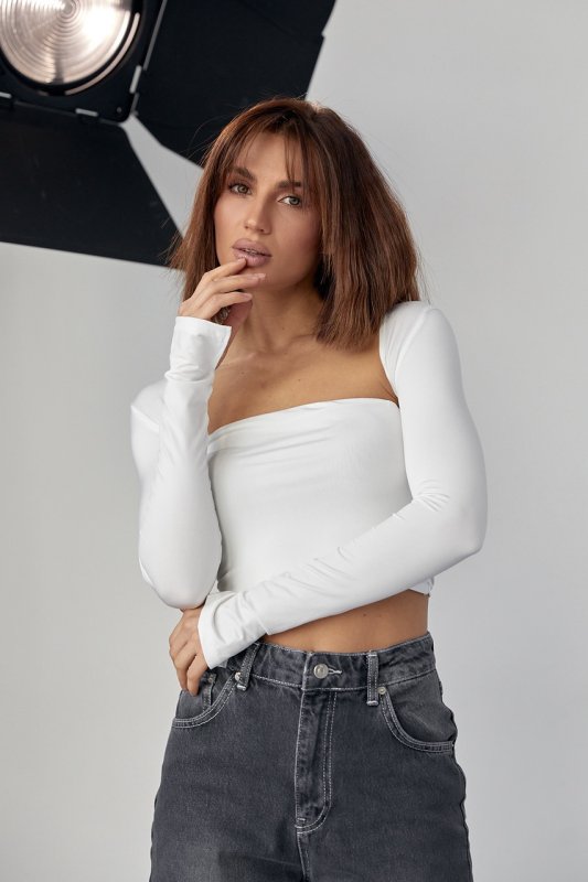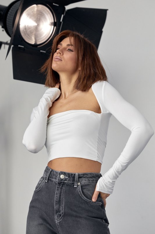 Эластичный кроп-топ с вырезом каре - 04593 молочный