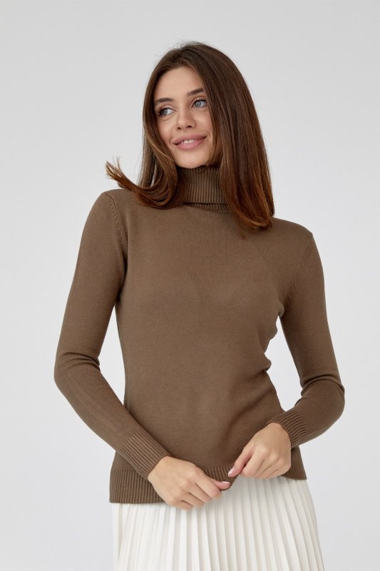 Трикотажный теплый гольф с круглой горловиной, высота вортника-стойки 15 см. Рукава втачные, длинные. По низу изделия и рукавов: манжет-резинка.