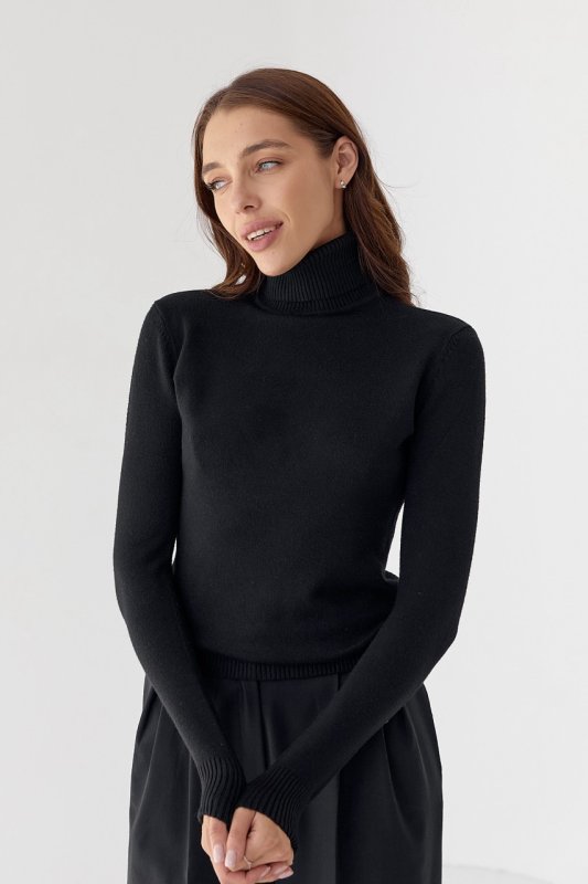 Трикотажный теплый гольф с круглой горловиной, высота вортника-стойки 15 см. Рукава втачные, длинные. По низу изделия и рукавов: манжет-резинка.