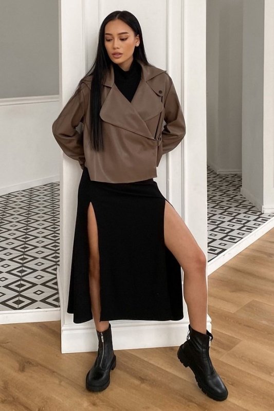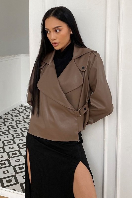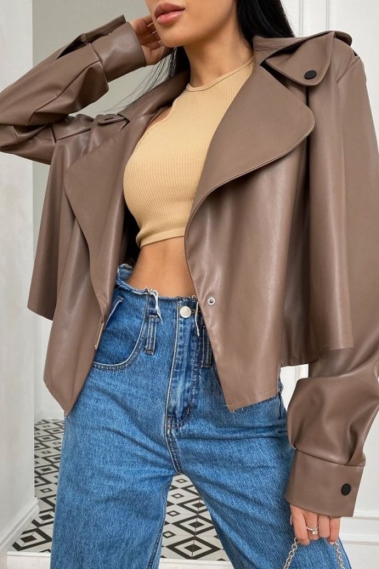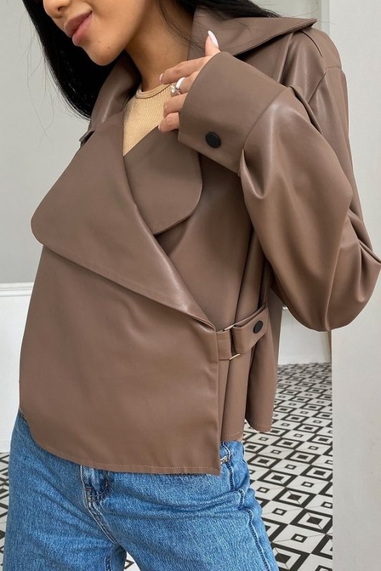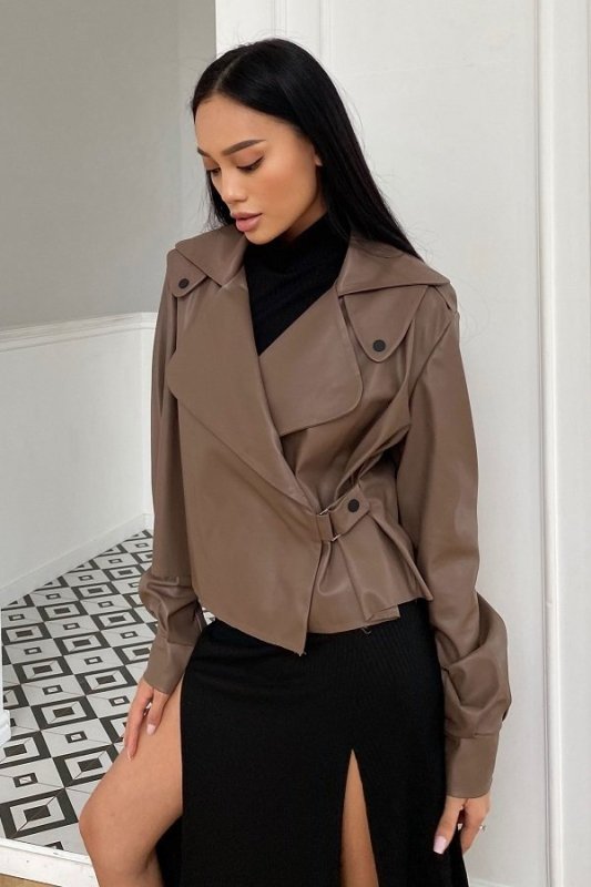 Короткие кожаные куртки уже как третье десятилетие являются самым популярным атрибутом женского гардероба. Именно кожаная куртка является той универсальной вещью, которую можно с легкостью скомпоновать с любым типом одежды. Мы представляем Вашему вниманию «изюминку» этой коллекцию — кожаную куртку «Дейт». Модель свободного кроя, с интересным двубортным полупоясом на кнопках, размеры в изделии идут спаренные. На плечиках предусмотрены декоративные «погоны», которые придают образу оригинальности. Универсальность и практичность — вот те две главные составляющие этой модели. Модель на подкладке.