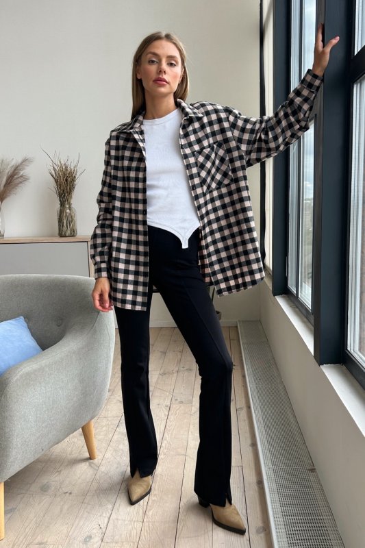 Эта стильная сорочка в клетку с фасоном оверсайз станет стильным дополнением к вашему гардеробу. Она идеально подойдет для создания непримиримого образа.