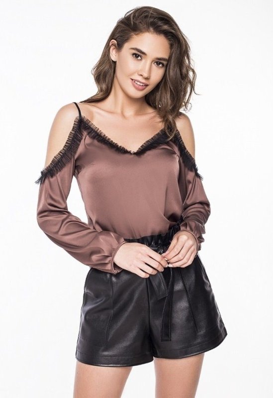Стильная блуза из шелка на бретелях. Рост модели 175 см.