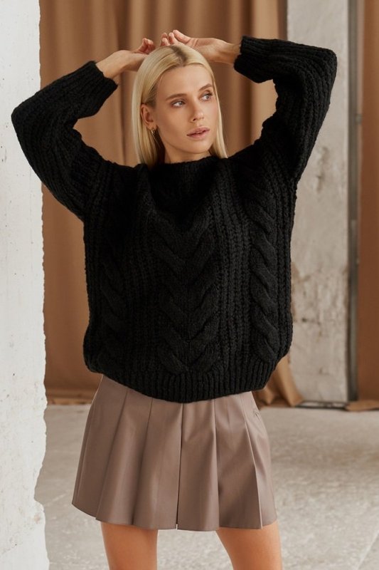 Базовый свитер крупной ажурной вязки с аккуратным воротом-стойкой в стиле "oversize". Длинный рукав и низ изделия на ребристых манжетах. Модель отлично сохраняет тепло и дарит ощущение уюта в прохладную погоду. Произведено в Турции.