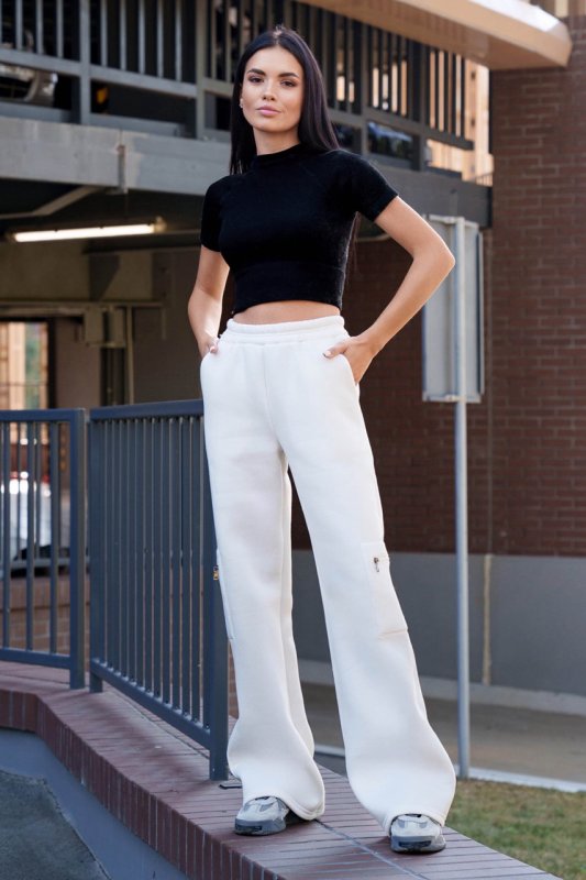 Брюки в стиле Casual из теплого футера на флисе отличного качества. Брюки украшены накладными карманами молниями по бокам.