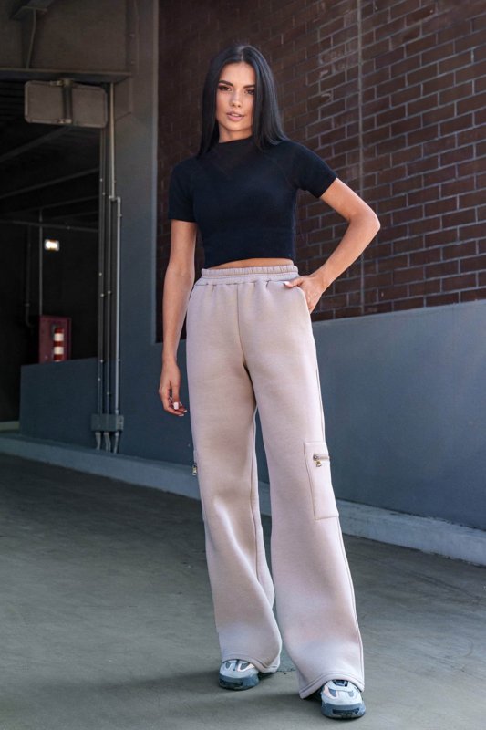 Брюки в стиле Casual из теплого футера на флисе отличного качества. Брюки украшены накладными карманами молниями по бокам.
