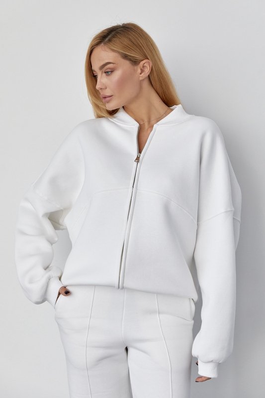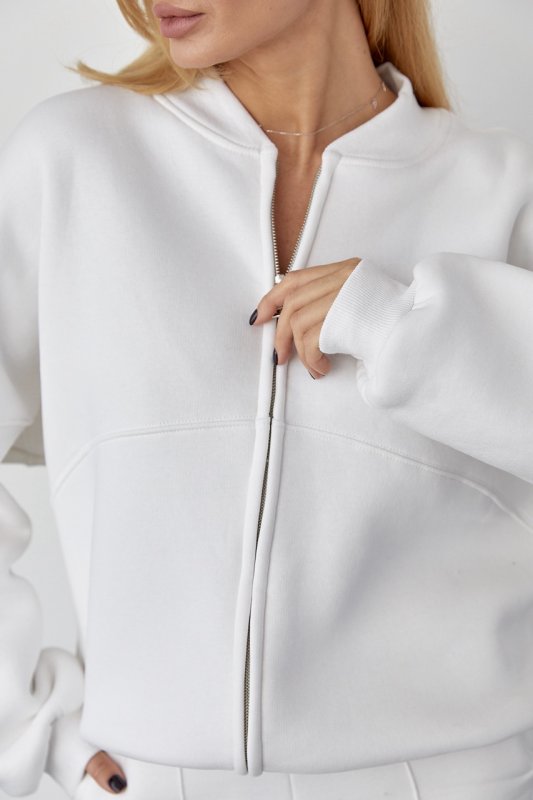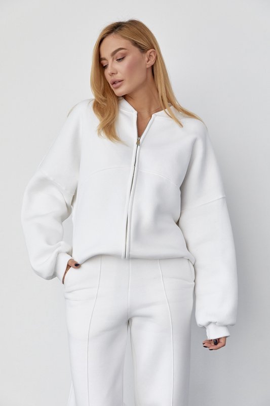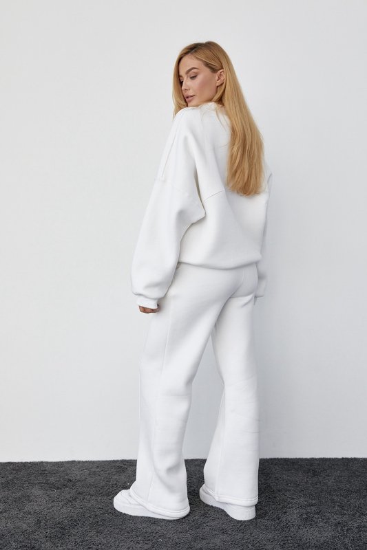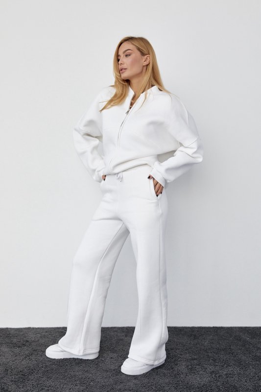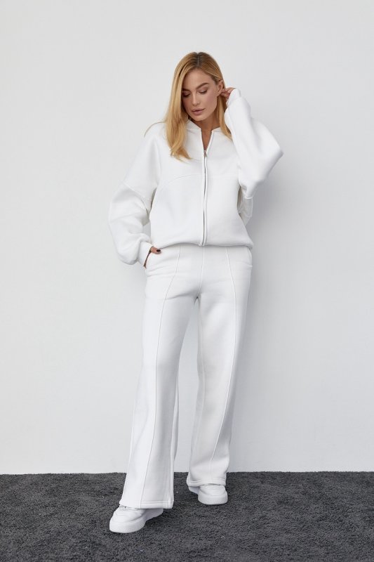Теплый спортивный костюм с бомбером и штанами - 4578 молочный
