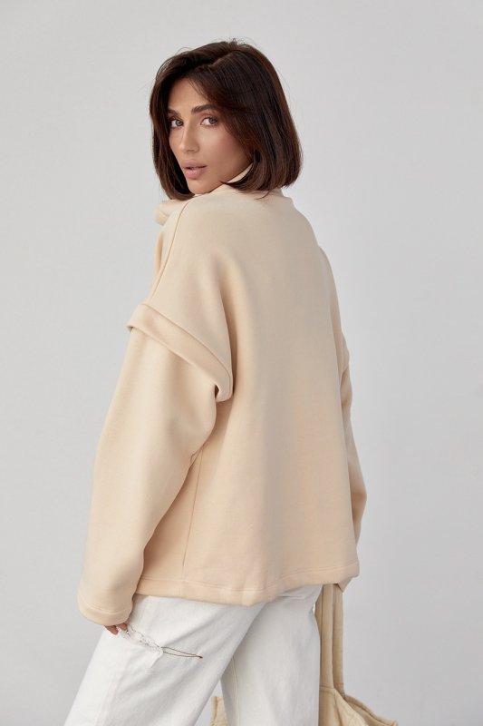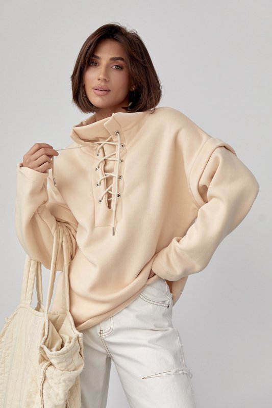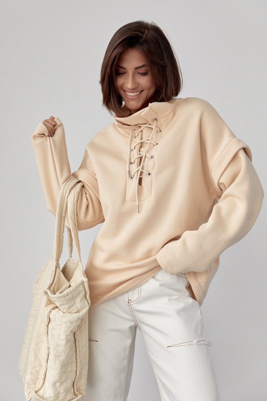 Теплый свитшот со шнуровкой на горловине - 05141 бежевый