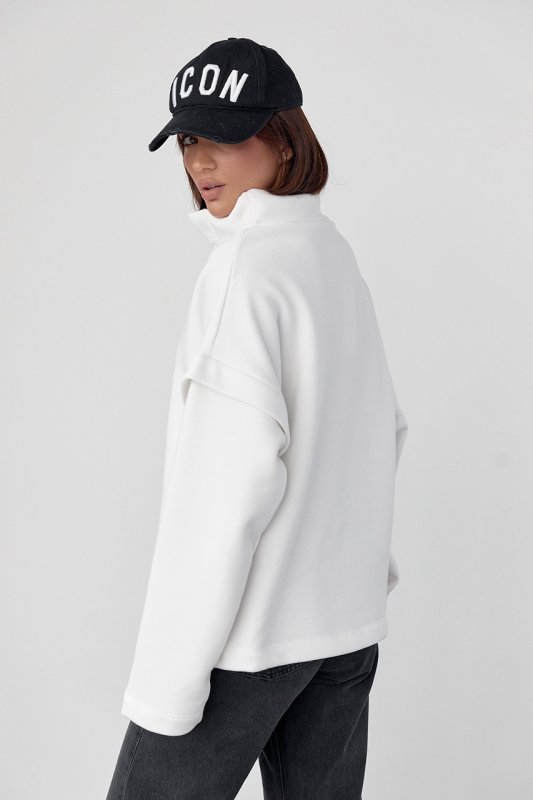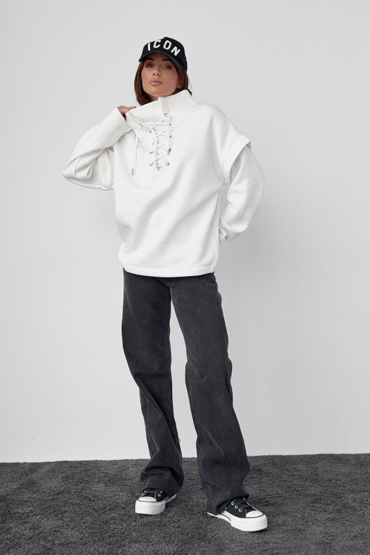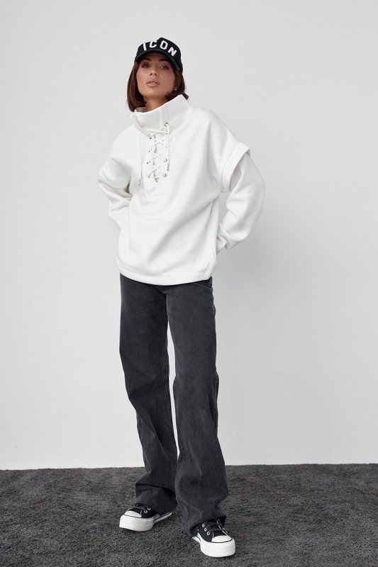 Теплый свитшот со шнуровкой на горловине - 05141 молочный