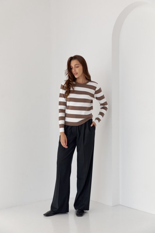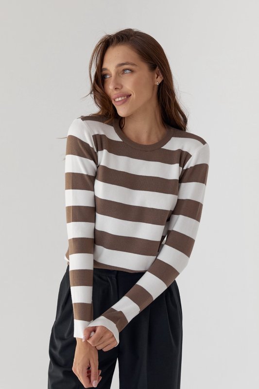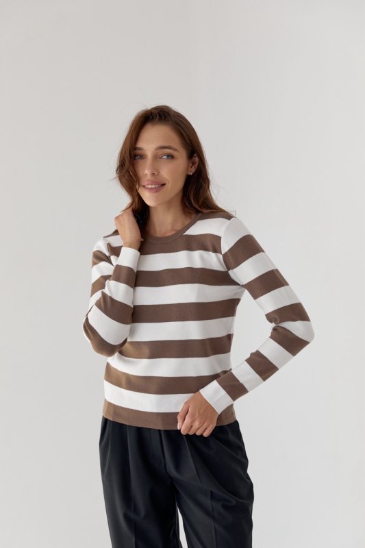 Теплый трикотажный джемпер. Рукава втачные, длинные, по низу рукавов и по низу изделия выполнен манжет.