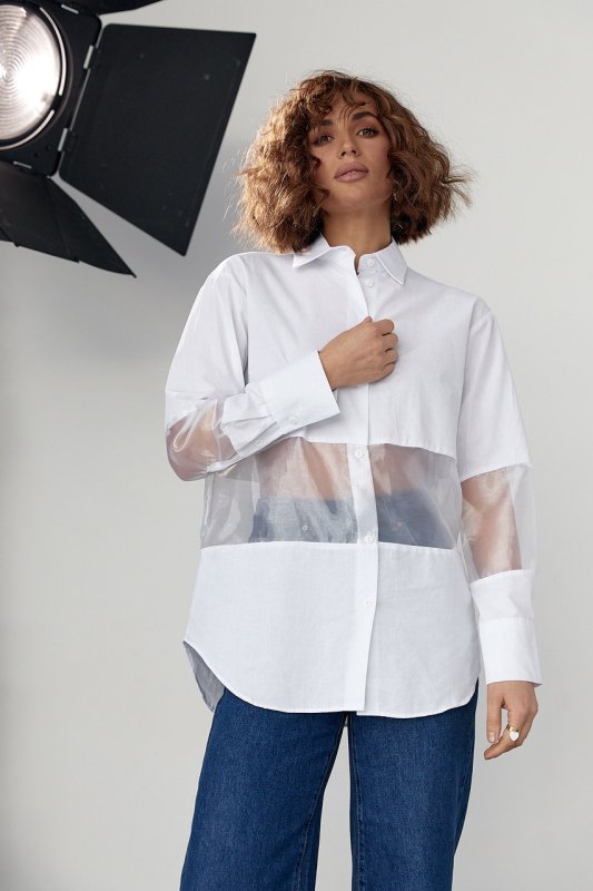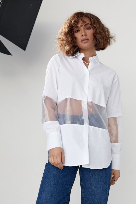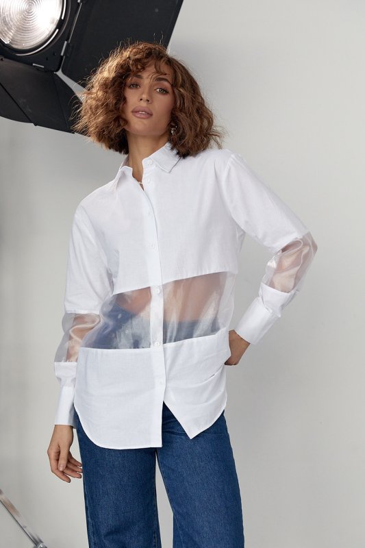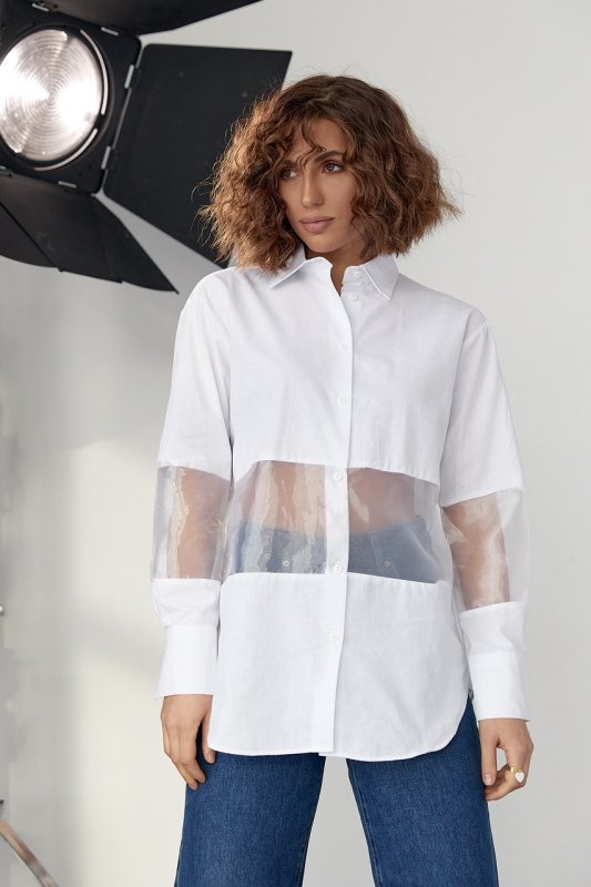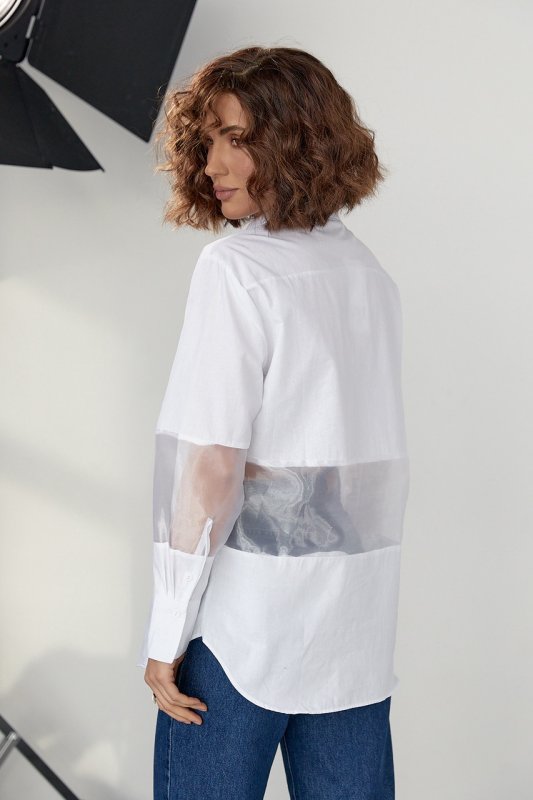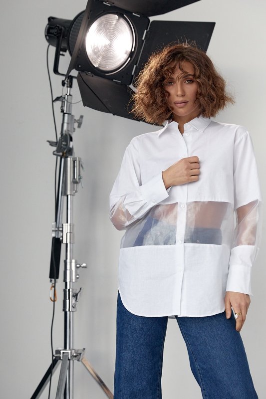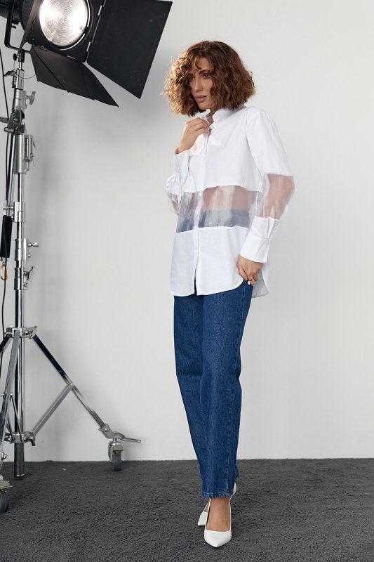 Удлиненная женская рубашка с прозрачными вставками - 23282 белый